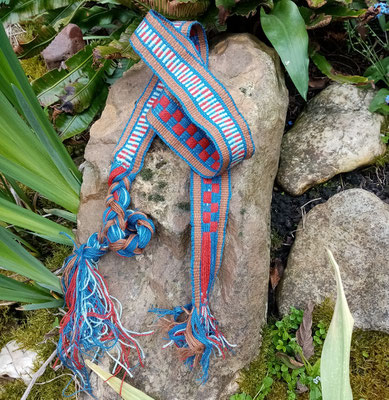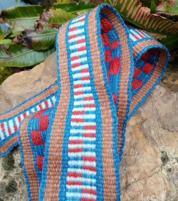Die Breite des Originals liegt bei 4,5cm. Seine Farben weichen ein wenig von meiner Nachwebung ab, da ich das genommen habe was vorrätig war.